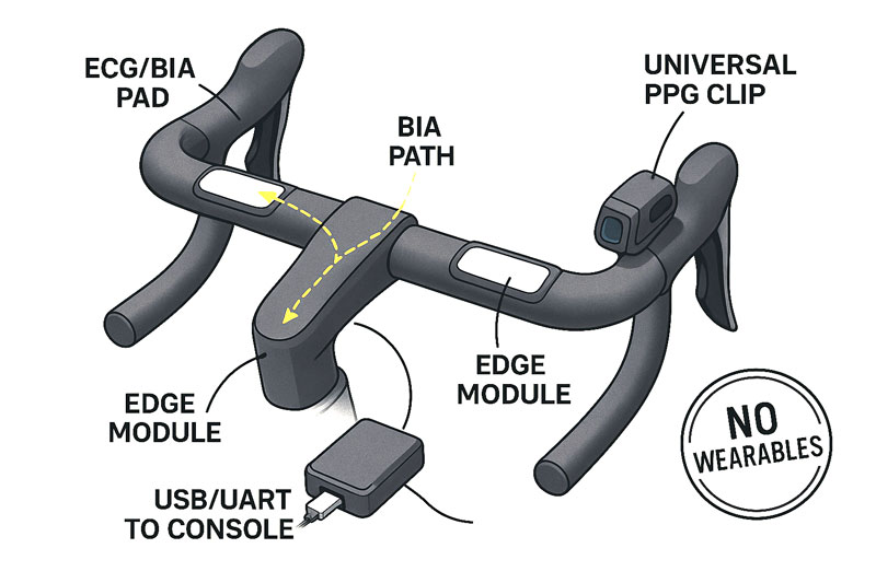 Real-time ECG, HRV and hydration feedback, no wearables required. Built-in sensors for bikes, treadmills, and ellipticals.